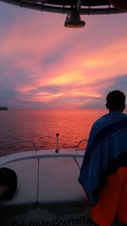 Enjoy the beautiful sunset, music, wildlife, and dolphins!